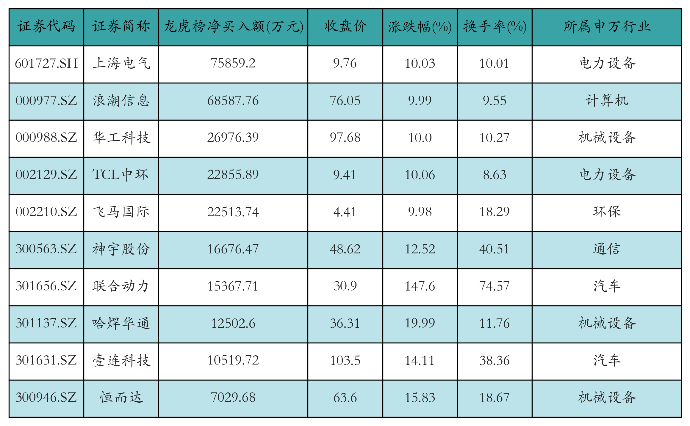 昨日龙虎榜营业部净买入额前10详情见下表: